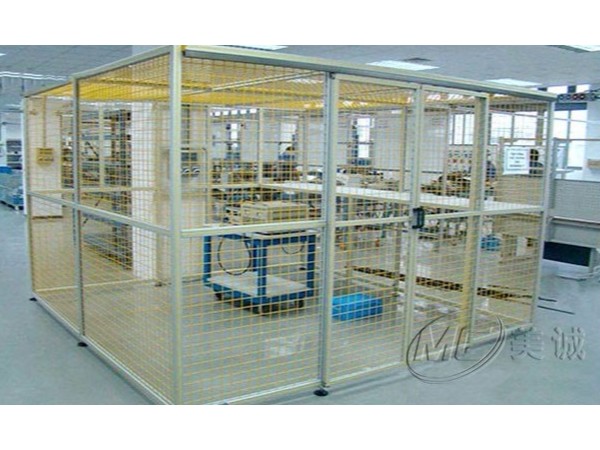 網格防護罩是在設備外圍建立安全范圍防護措施,以劃分安全范圍,阻隔人或物與設備直接接觸,起到安全警示作用,常和報警及斷電設備配套使用。框架部分使用鋁型材,配合絲網、亞克力、PC等各類板材,通過鋁型材配件安裝膨脹螺栓連接鋁型材立柱和地面。