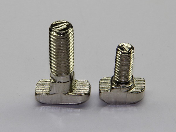 T 型螺栓直接放入型材槽內,安裝過程中它能自動定位鎖緊,常與法蘭螺母配合使用,是安裝角件等型材配件的好幫手。根據不同型材、槽寬及安裝要求可選用不同規格及長度的 T 型螺栓。